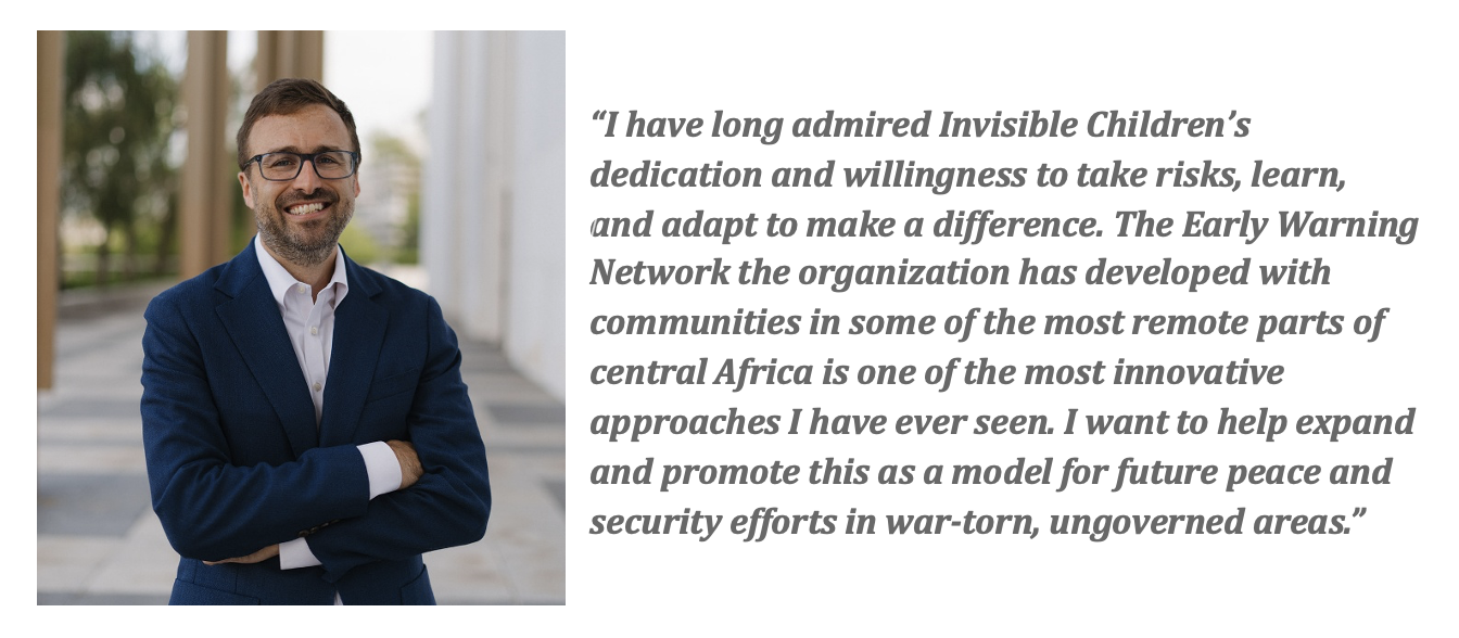 Invisible Children is thrilled to announce the appointment of Peter J. Quaranto and Lisa Dougan to its Board of Directors. Their addition marks an exciting moment of renewal and momentum for the organization as it deepens its commitment to locally-led peacebuilding and community protection across Central Africa and Sudan during a time of significant regional and global change.